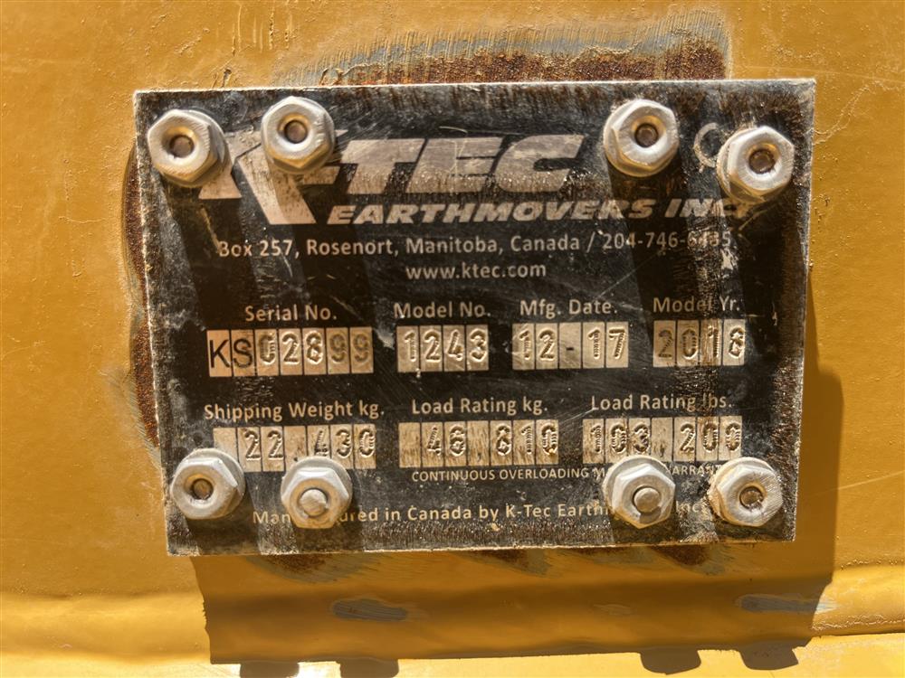2018 K-Tec Earthmovers 1243ADT Scraper Pans
